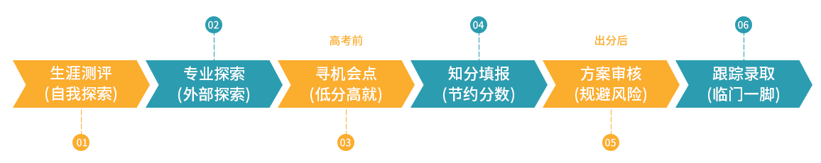 规划师一对一服务,从学生的兴趣爱好、性格特征、未来职业发展等角度出发,为学生量身设计符合其生涯发展的志愿方案。